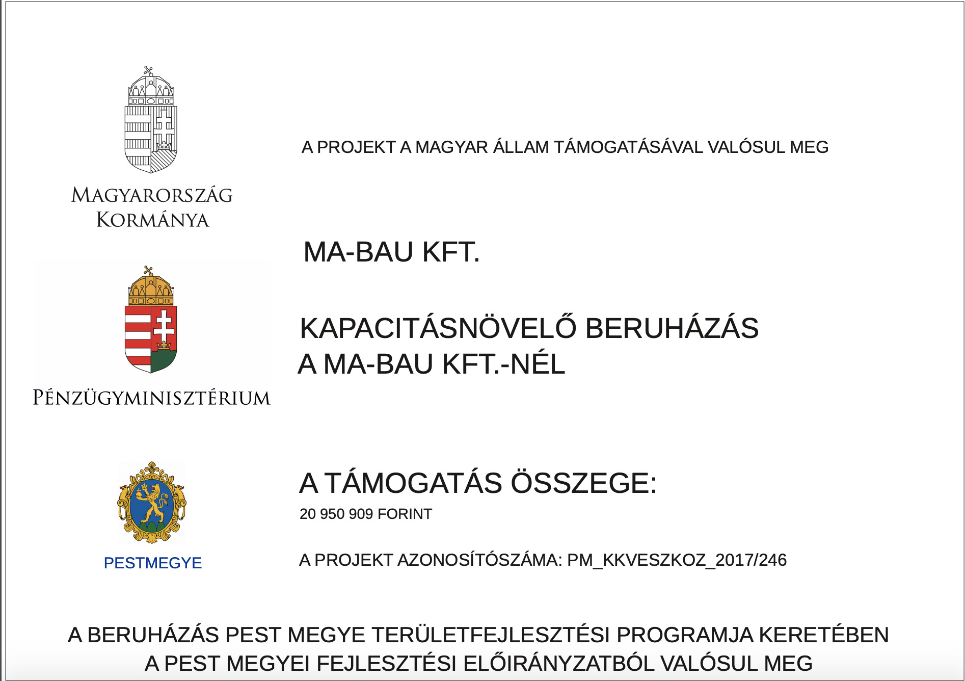 A támogatási szerződés száma: PM_KKVESZKOZ_2017/246